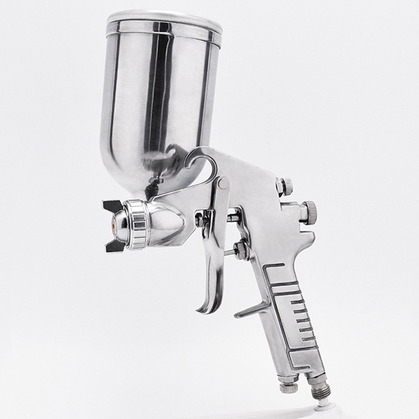Het pistool van de lucht vernevelde verf door aan de luchtcompressor te verbinden, gebruikend de negatieve druk die door de hoge snelheidsluchtstroom wordt geproduceerd om de verf uit het reservoir te zuigen en het met samengeperste lucht door het mondstuk te mengen om uiterst kleine vernevelde deeltjes te vormen. De verf wordt gelijkmatig op het oppervlak van het object gespoten onder de impuls van de luchtstroom, wat resulteert in een gladde coating.