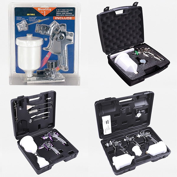 Afhankelijk van de verschillende behoeften biedt de luchtspuitpistoolkit meerdere pakketspecificaties. Of het nu gaat om een kleine reparatieklus of een grote schilderklus, u kunt de juiste pakketconfiguratie kiezen om te voldoen aan de specifieke eisen van verschillende spuitklussen.