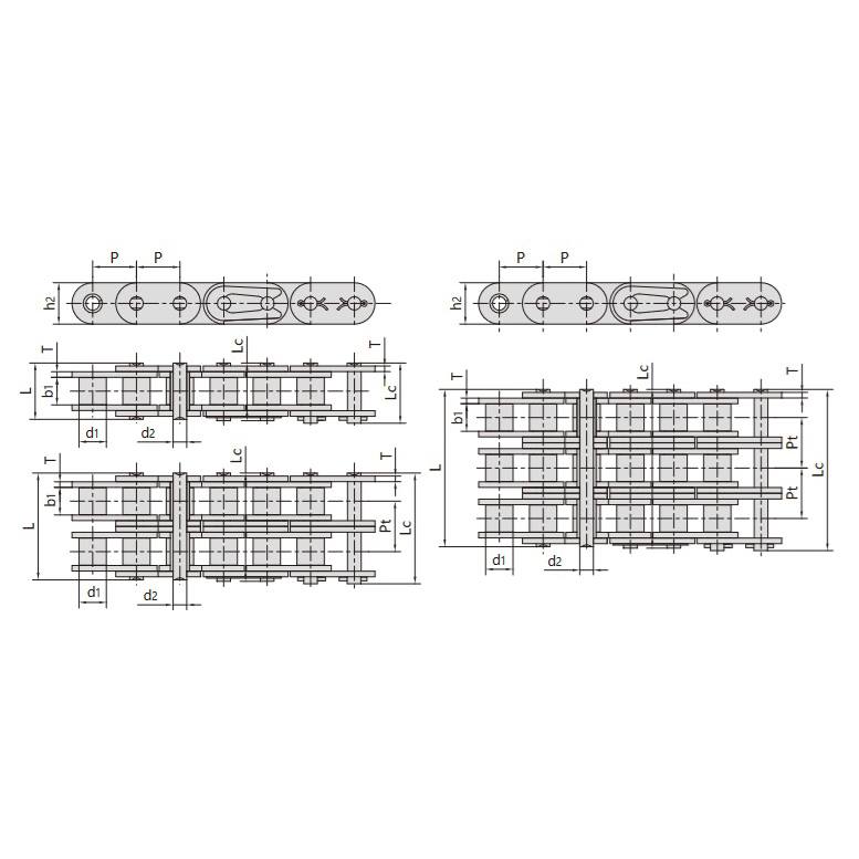 - Interferentiepasvorm tussen binnenste schakelplaat & huls en buitenste schakelplaat & pen; speling tussen rol & huls en huls & pen zorgt voor soepel buigen en verminderde slijtage.