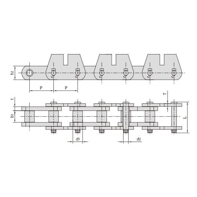 Samengevat biedt de transportketting met bevestigingsplaat verbeterde stabiliteit, aanpassingsvermogen en duurzaamheid, voor een efficiënte en betrouwbare materiaaltransport in diverse industriële omgevingen.