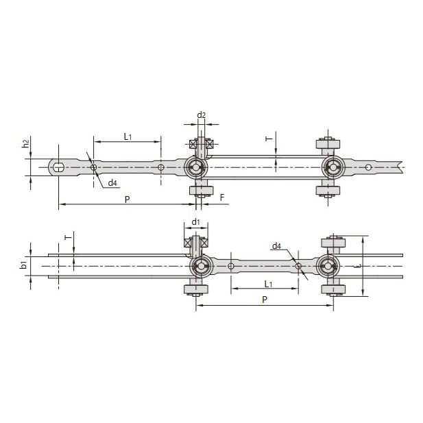 De dubbel scharnierende transportketting is ontworpen voor een hoge flexibiliteit en aanpassingsvermogen aan de belasting. Dankzij de unieke structuur kan de ketting flexibel draaien onder druk van de belasting en schokken, waardoor hij geschikt is voor verschillende werkomstandigheden en belastingseisen.