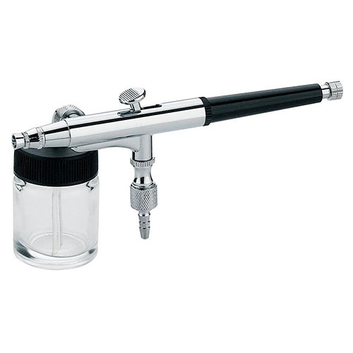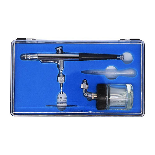De airbrush met dubbele actie is een uiterst nauwkeurig spuitinstrument dat op grote schaal wordt gebruikt op vele gebieden zoals kunstcreatie, modellering, taartdecoratie, schoonheid en make-up, tatoeëren en huisdecoratie. Omdat het fijne lijnen en zachte gradiënteffecten kan produceren, is het het gereedschap bij uitstek geworden voor veel gedetailleerde klussen.
