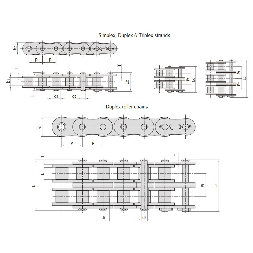 • Standaardafmetingen:Behoudt dezelfde parametrische afmetingen als de rollenkettingen uit de Heavy Duty Series voor eenvoudige uitwisselbaarheid.